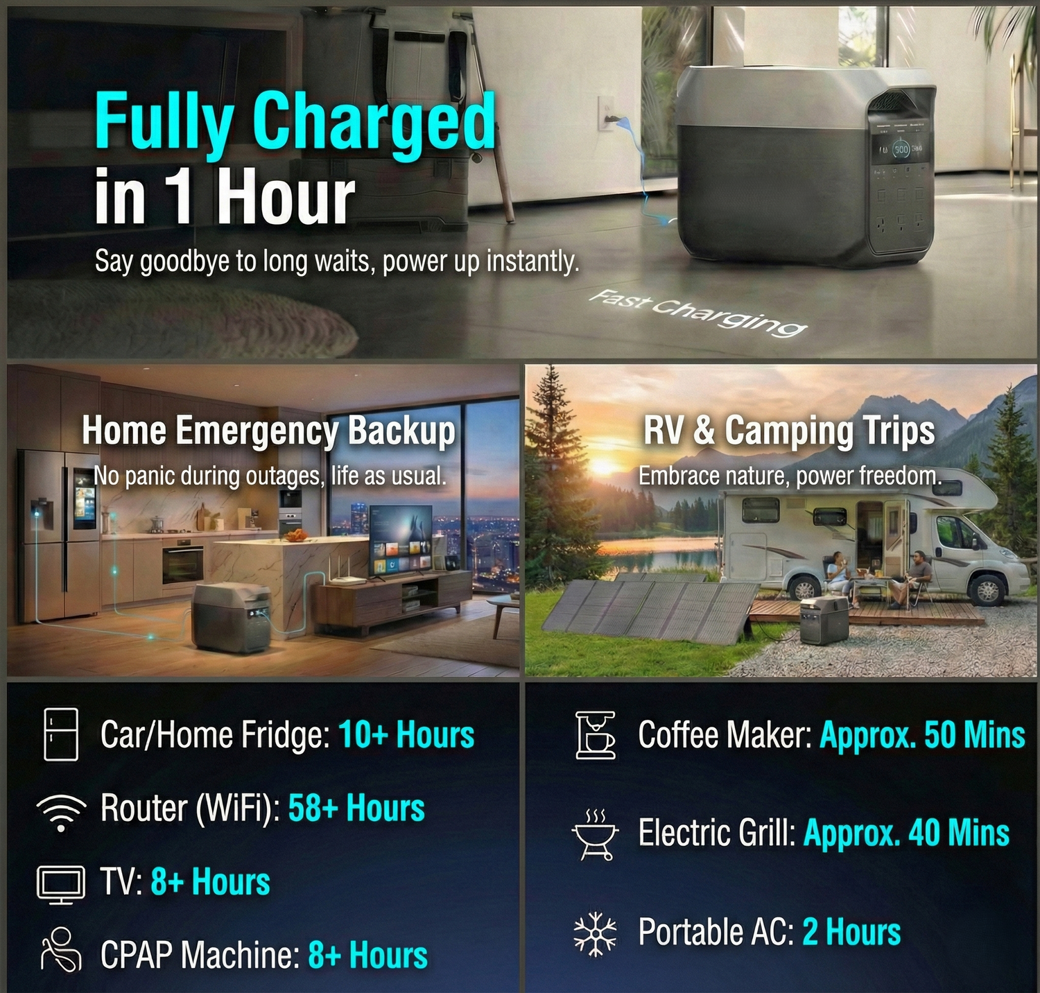 3600W = Compatible with 99% of Household Appliances | All-Day Power